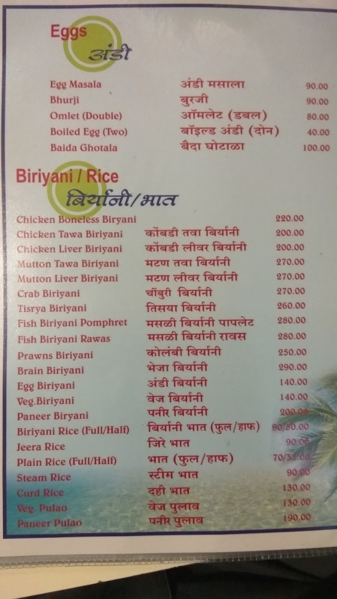 Signature dishes such as Bombil chilly and the always-fresh Ravas fry are frequently mentioned in reviews, emphasizing the freshness of ingredients and the richness of flavors. It's clear that the seafood served here captures the essence of coastal dining, with reviews emphasizing that dishes like the prawns fry and bheja fry leave a lasting impression. Customers also recommend pairing your meal with Solkadhi, a refreshing coconut and kokum drink that complements the spicy dishes beautifully.